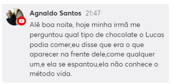 - Em vez de proibir alimentos pra não subir a glicemia, você vai começar a permitir todos eles por saber exatamente como controlar a glicemia. Veja só o Agnaldo, que agora consegue dar qualquer tipo de chocolate para o filho: