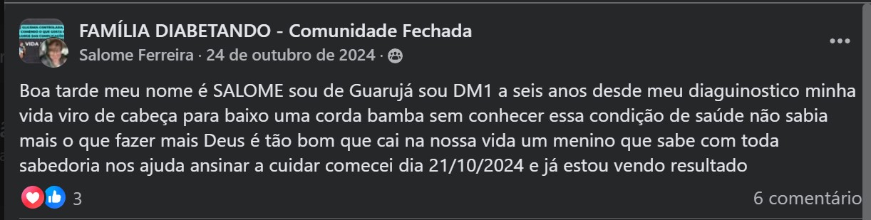 Todas as dúvidas que você tiver poderão ser postadas na comunidade e serão respondidas pelo próprio Ale e/ou por alunas mais experientes que já dominam o Método V.I.D.A. e já têm a glicemia controlada mesmo comendo de tudo.